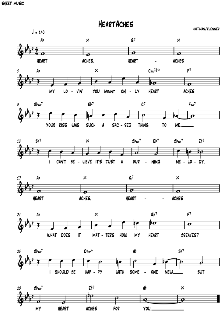 But my heart aches for you…Source: MusixmatchSongwriters: A. Hoffman / J. KlennerHeartaches lyrics © Campbell Connelly And Co.ltd., Mca Music Publishing, A.d.o. Universal S, Redwood Music Ltd